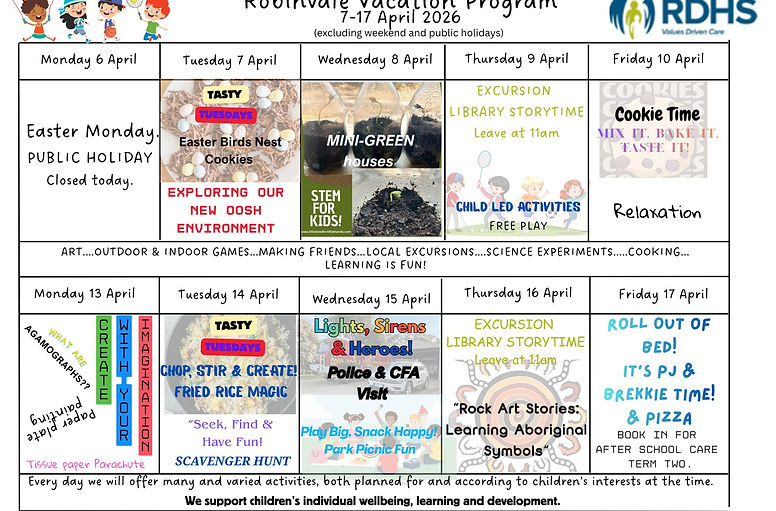 Below is their Easter Holiday Program timetable. Times are from 8am to 6pm excluding Weekends and Public Holidays.